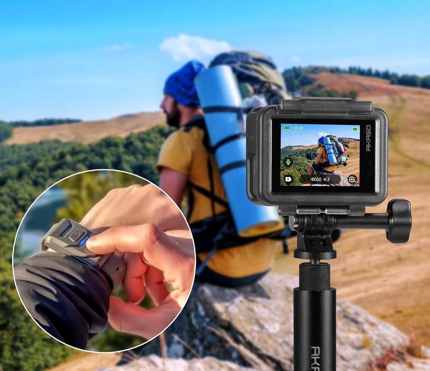 Steruj kamerą bezdotykowo – wystarczy komenda głosowa, np. „Zrób zdjęcie AKASO”.