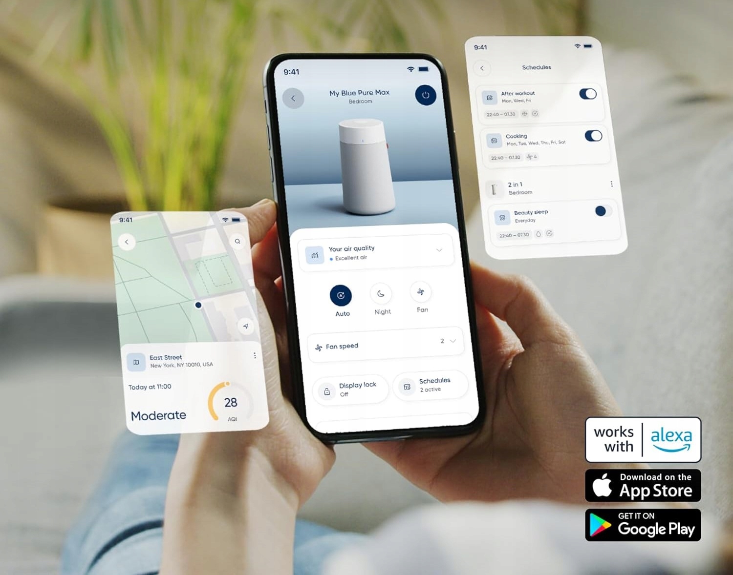 - Aplikacja Blueair umożliwia: