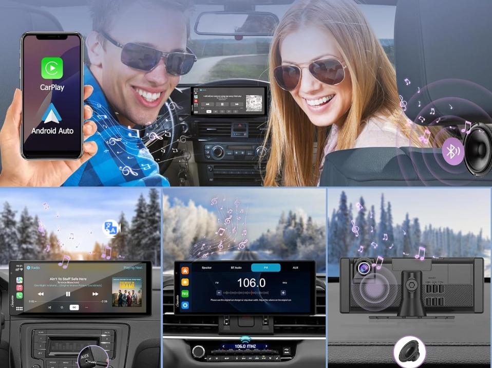 CARPURIDE W904 Wyświetlacz kamera samochodowa Carplay&Android 10″ 4K 1080p