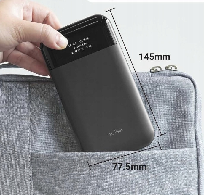 Kompaktowy i przenośny: Mudi mierzy 5,7 × 3,1 × 0,9 cala i waży tylko 285 g, a wbudowana bateria 7000 mAh pozwala na do 8 godzin pracy, zapewniając niezawodne połączenie w podróży.