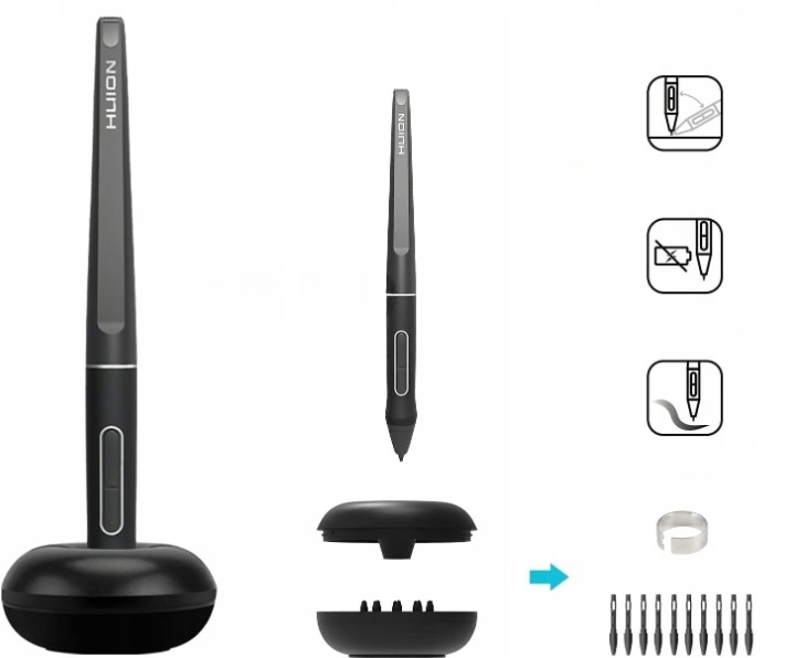 Nowoczesna technologia pasywna – brak potrzeby ładowania. 8192 poziomy nacisku, wykrywanie nachylenia ±60°, rozdzielczość 5080 LPI i szybkość raportowania 266 PPS.