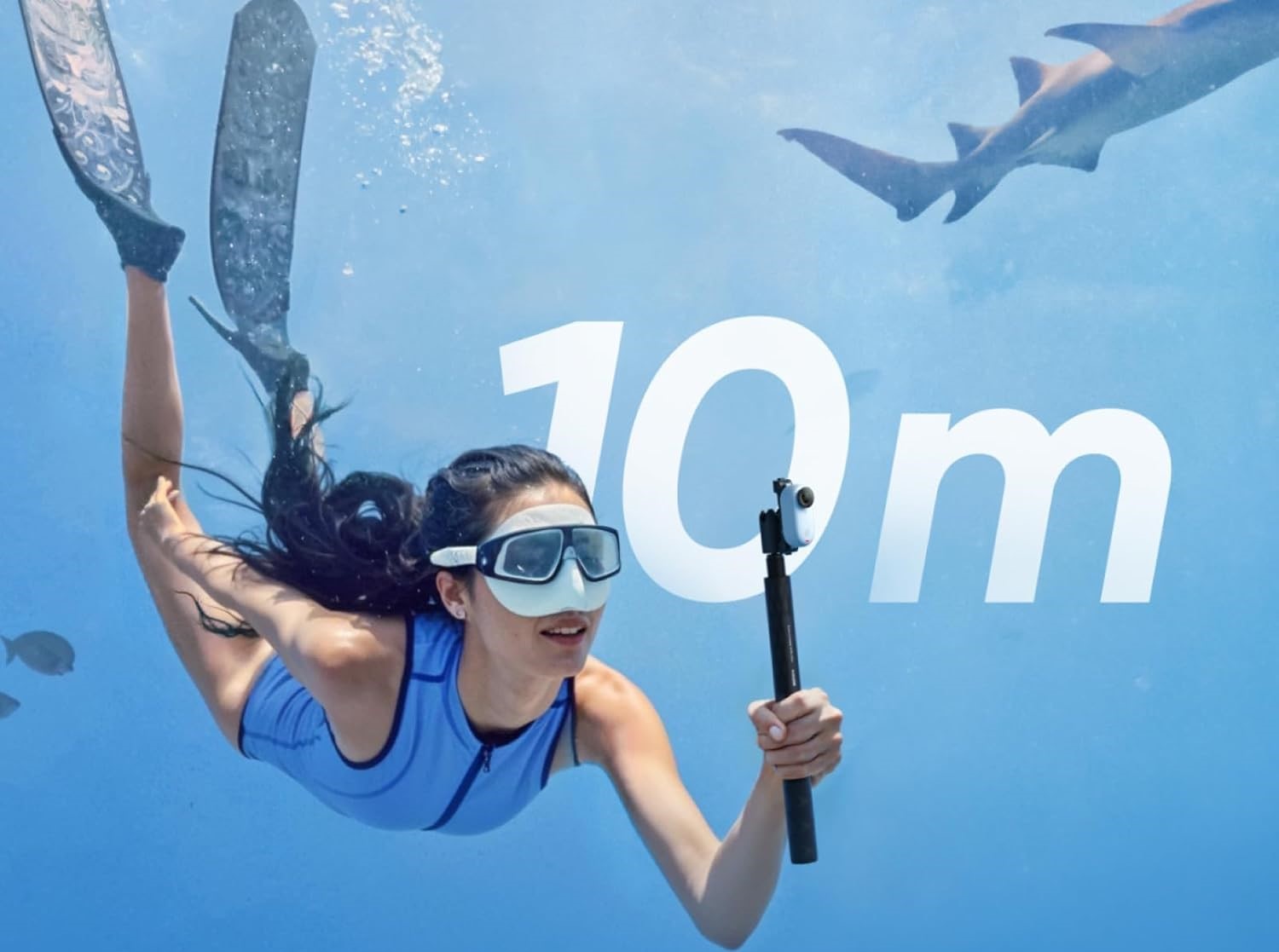 Jest wodoszczelna do 10 m (IPX8), a Action Pod ma ochronę IPX4. Z dedykowaną obudową nurkową możesz zanurzać ją nawet do 60 m.