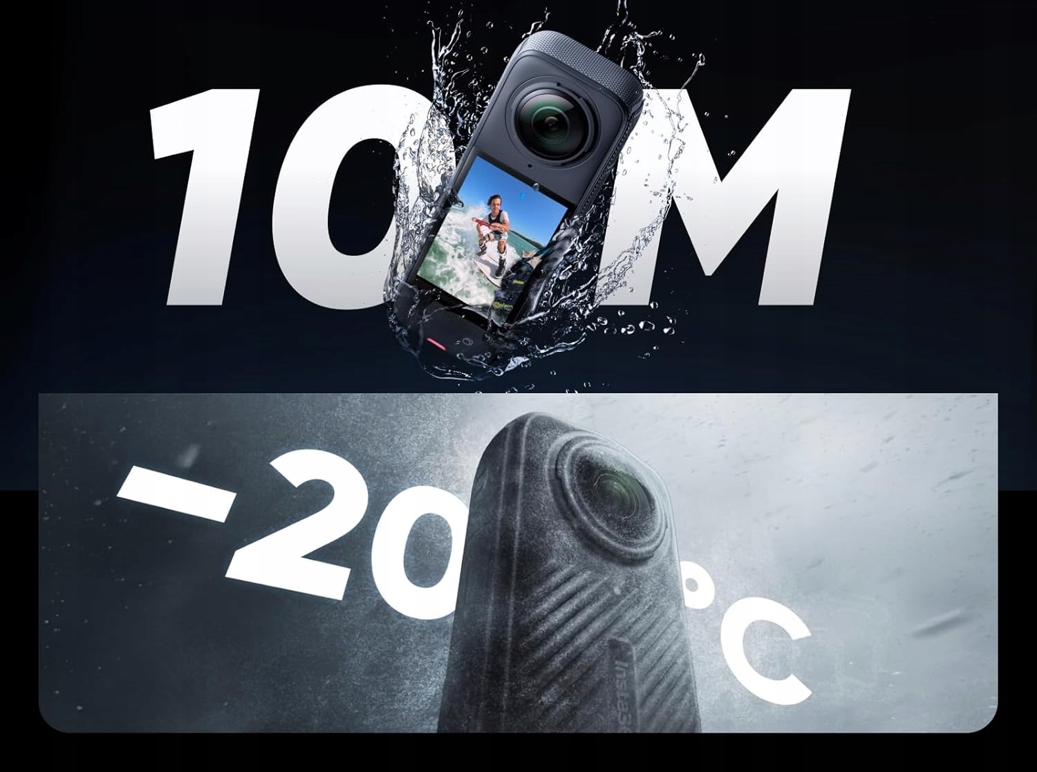Wodoszczelność do 10 m bez obudowy. Możliwość nagrywania pod wodą aż do 60 m z opcjonalną obudową nurkową. Odporność na zimno do -20°C.