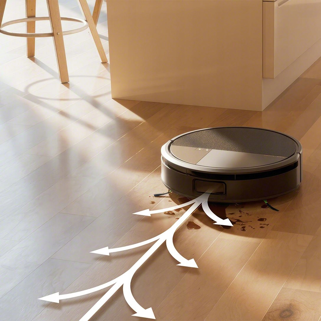 Sztuczna inteligencja natychmiast wykrywa przeszkody, takie jak kable, skarpetki czy odchody zwierząt, skutecznie ich unikając. Rozpoznaje też rodzaj zabrudzenia — stały lub płynny — i automatycznie dostosowuje liczbę przejazdów.