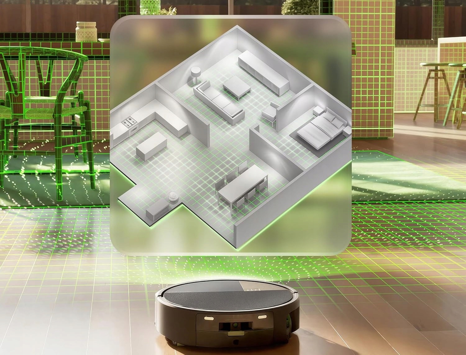 Zaawansowana technologia LiDAR tworzy szczegółowe mapy 3D pomieszczeń, automatycznie rozpoznaje strefy i dba o pełne pokrycie powierzchni — zarówno w dzień, jak i w nocy.
