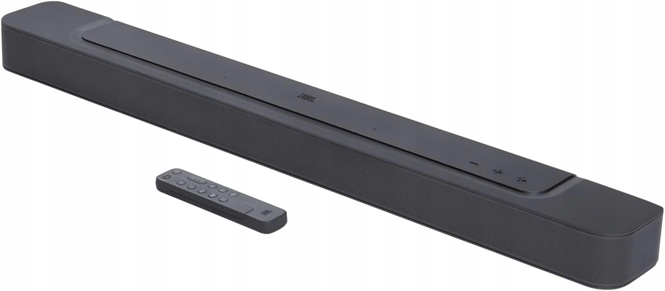 - Zakres dostawy: 1 x soundbar JBL w kolorze czarnym, 1 x pilot zdalnego sterowania z bateriami, 1 x kabel sieciowy i HDMI, 2 x uchwyt ścienny w kształcie litery L ze śrubami + szablon, instrukcja obsługi