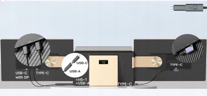 - Specjalny kabel H5-T do konwersji sygnału wideo z laptopów bez pełnoprawnego portu USB-C (np. MacBooki z chipami M1/M2/M3)