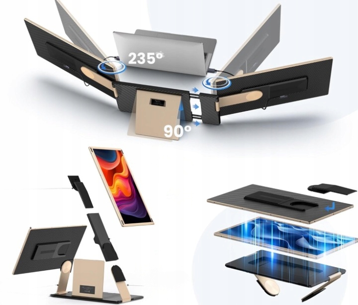 Stwórz swoją własną mobilną stację roboczą dzięki Bunosdias S6 – potrójnemu przenośnemu monitorowi o przekątnej 15,6 cala. Ten innowacyjny zestaw z dodatkowymi, składanymi ekranami bocznymi pozwala w pełni wykorzystać możliwości pracy na wielu ekranach, gdziekolwiek jesteś.