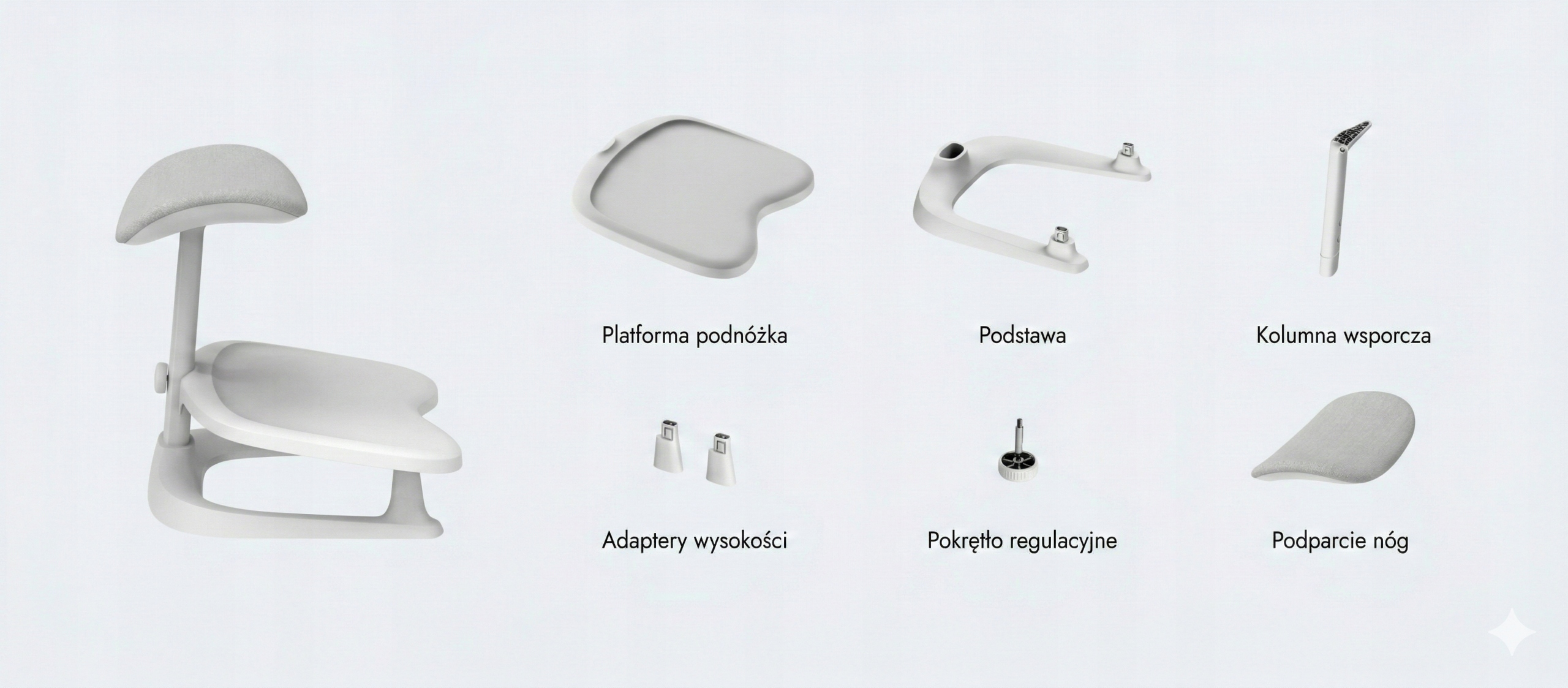 - Stabilność: Specjalnie zaprojektowana, solidna konstrukcja zapobiega przesuwaniu się podnóżka, co pozwala w pełni skupić się na wykonywanych zadaniach.