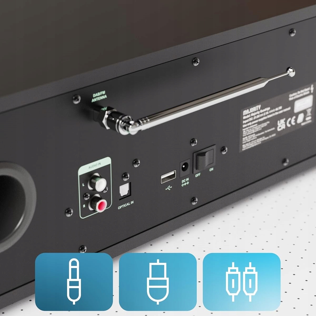 Radio posiada szeroki wybór wejść (AUX, RCA, Optical) oraz port USB, co zwiększa jego funkcjonalność i umożliwia podłączenie różnych źródeł dźwięku. Obsługa jest intuicyjna, a pilot zdalnego sterowania ułatwia codzienne użytkowanie.