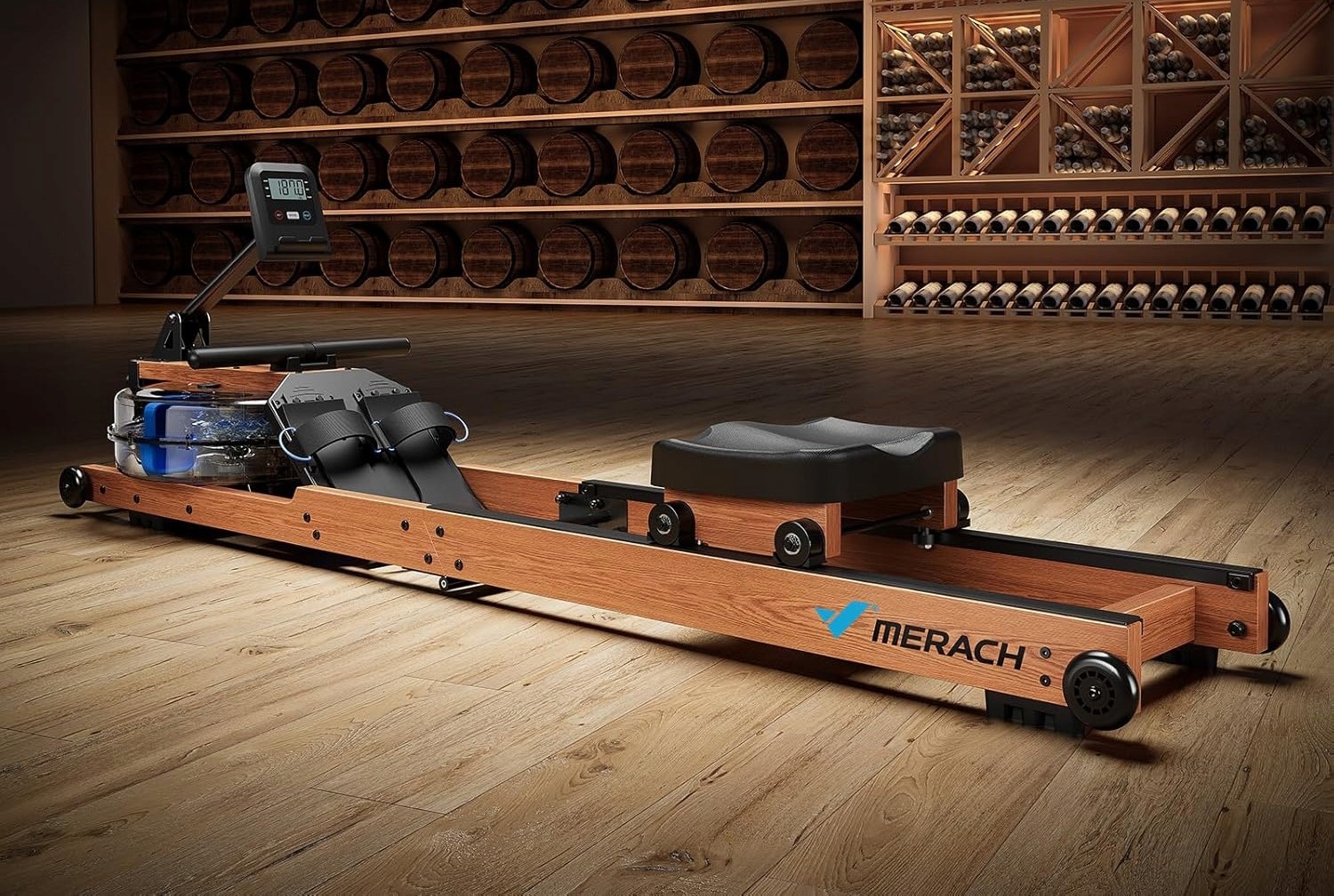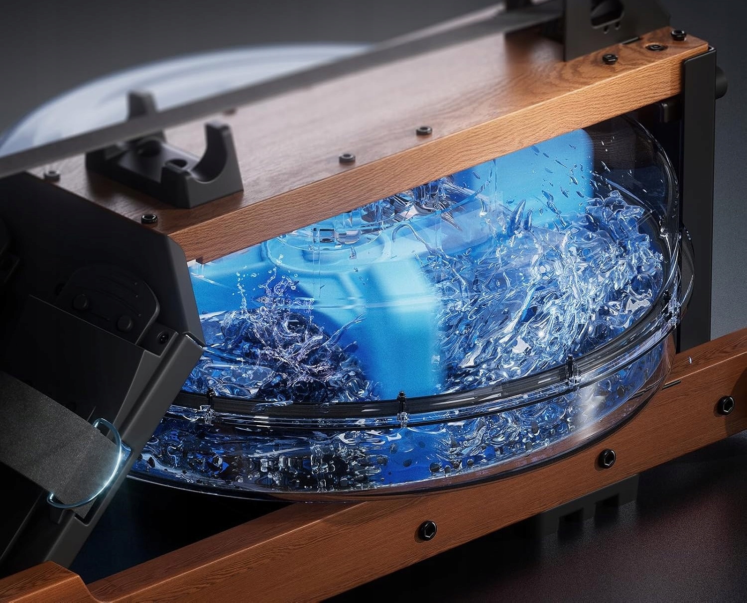 Wioślarz wodny MERACH Mr-r28 to urządzenie treningowe przeznaczone do użytku domowego, łączące klasyczny opór wodny z nowoczesnymi funkcjami monitorowania treningu.