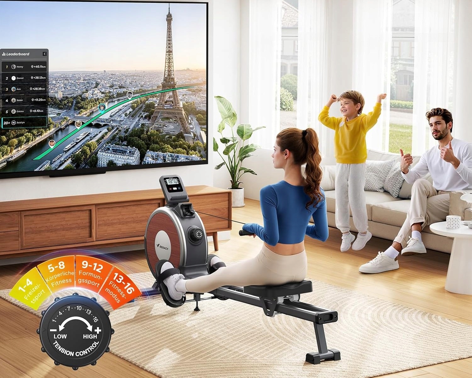 Możliwość połączenia wioślarza z aplikacją, która pozwala: