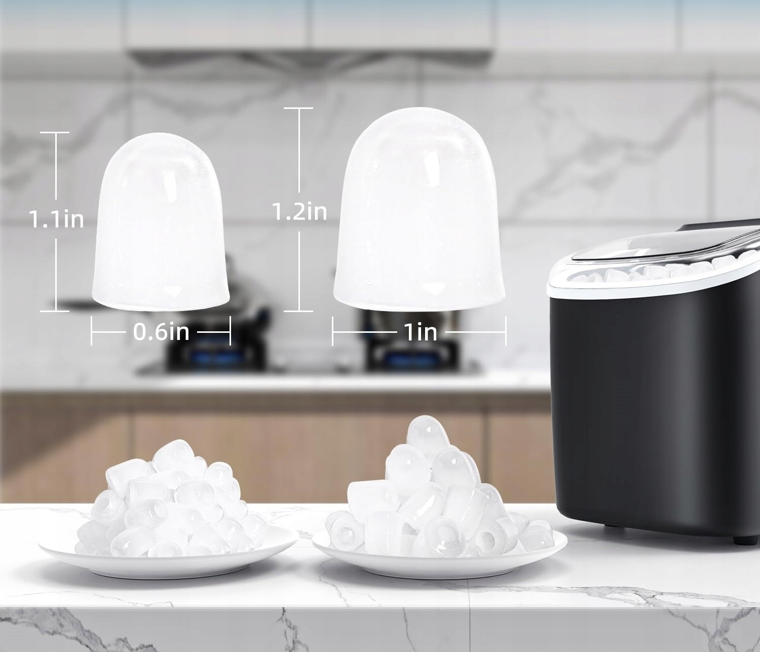 Szybka i wydajna kostkarka do lodu – Nasze kompaktowe urządzenie wytwarza 9 kulistych kostek lodu w zaledwie 6 minut. Wystarczy napełnić zbiornik 1,2 litra wody, a maszyna może wyprodukować do 26 funtów (ok. 12 kg) lodu w ciągu doby. Przez przezroczyste okienko można na bieżąco obserwować proces tworzenia lodu. Koniec z długim oczekiwaniem – lód zawsze pod ręką, kiedy tylko go potrzebujesz.