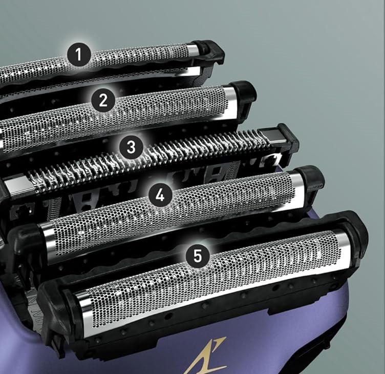 - System 5 Ostrzy z Japońskiej Stali: Pięć zaawansowanych ostrzy zewnętrznych o różnej strukturze chwyta każdy rodzaj włosa – od grubego zarostu po miękkie, płasko leżące włoski. Wewnętrzne ostrza są polerowane nanometrycznie pod kątem 30°, co zapewnia cięcie tuż przy samej skórze.