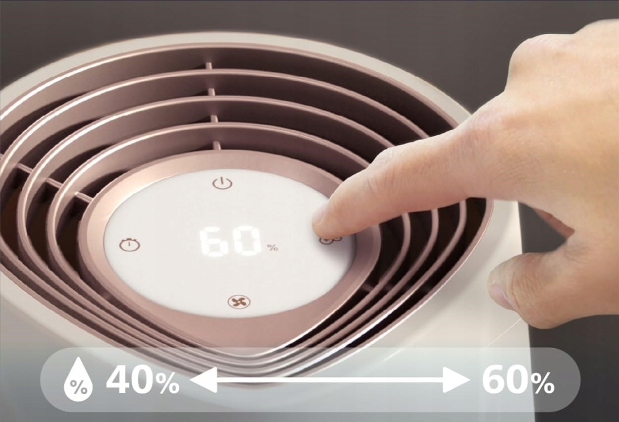 Oddychaj swobodnie i wypełnij swój dom czystym, komfortowym powietrzem. Urządzenie zostało stworzone z myślą o higienicznym łagodzeniu skutków suchego powietrza, takich jak sucha skóra, spierzchnięte usta, podrażniona śluzówka nosa, pieczenie oczu czy zatkany nos.