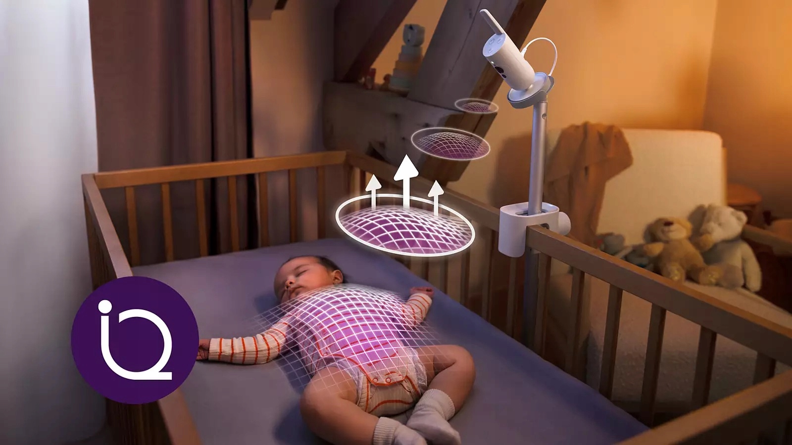 Dzięki technologii AI niania analizuje miliony pikseli na sekundę, wykrywając nawet najdrobniejsze ruchy — bez konieczności zakładania czujników na dziecko.
