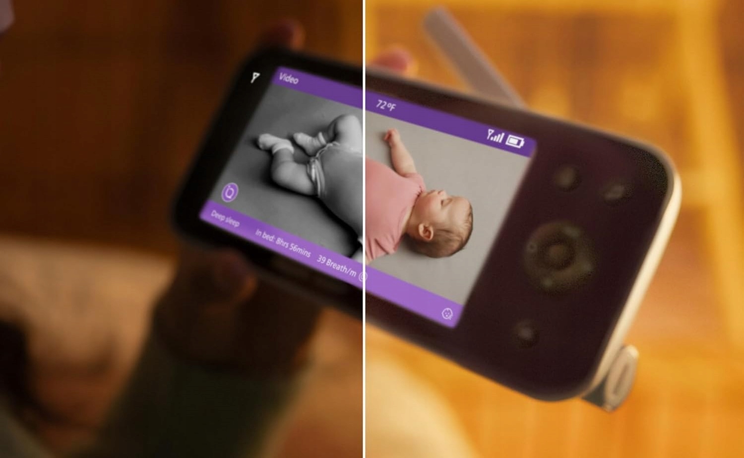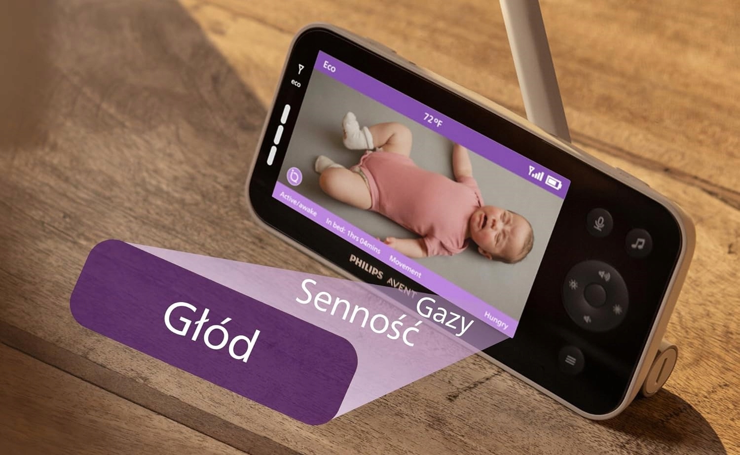 Podgląd i uspokajanie dziecka z dowolnego miejsca na świecie, z dostępem do dziennika snu oraz alertów w czasie rzeczywistym.