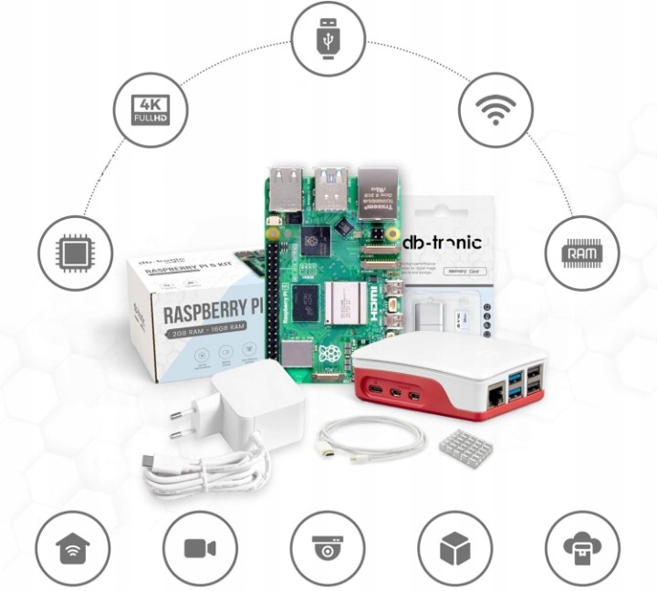 Kompletny zestaw Raspberry Pi 5 idealny zarówno dla początkujących, jak i zaawansowanych użytkowników. Zawiera wszystko, czego potrzebujesz do stworzenia wydajnej platformy do nauki, programowania, automatyki, multimediów czy hobbystycznych projektów.