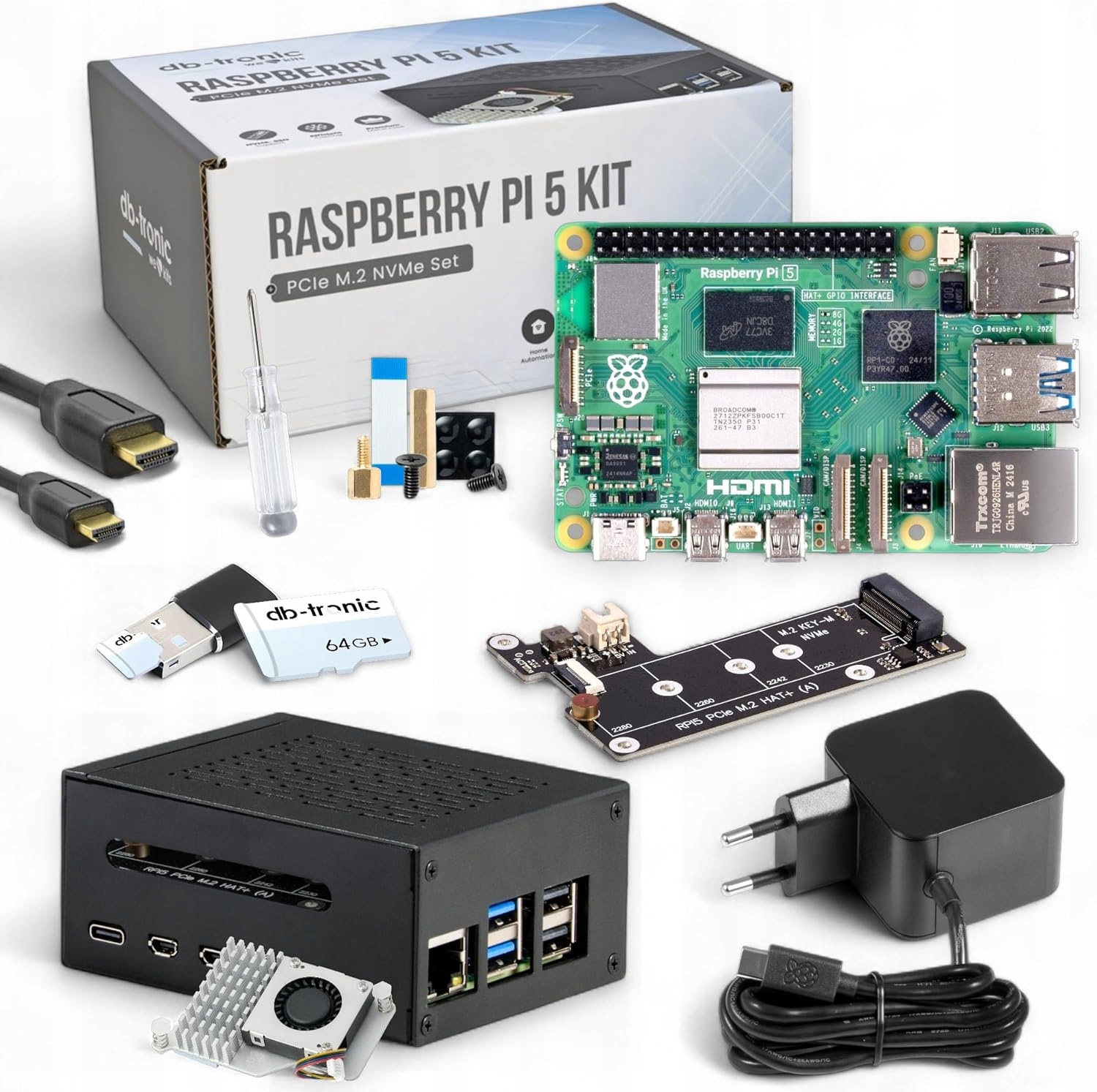 Raspberry Pi 5 8GB PCIe M.2 NVMe zestaw startowy SSD USB-C 27W edycja 64 GB