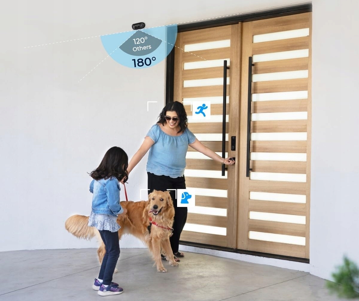 Zastosowany czujnik PIR o kącie 180 stopni w połączeniu z funkcjami AI zapewnia precyzyjne wykrywanie ruchu i znacząco redukuje liczbę niepotrzebnych powiadomień. Użytkownik może definiować własne strefy monitorowania i otrzymywać alerty wyłącznie z wybranych obszarów. Funkcje inteligentnej detekcji działają lokalnie i nie wymagają dodatkowych opłat.