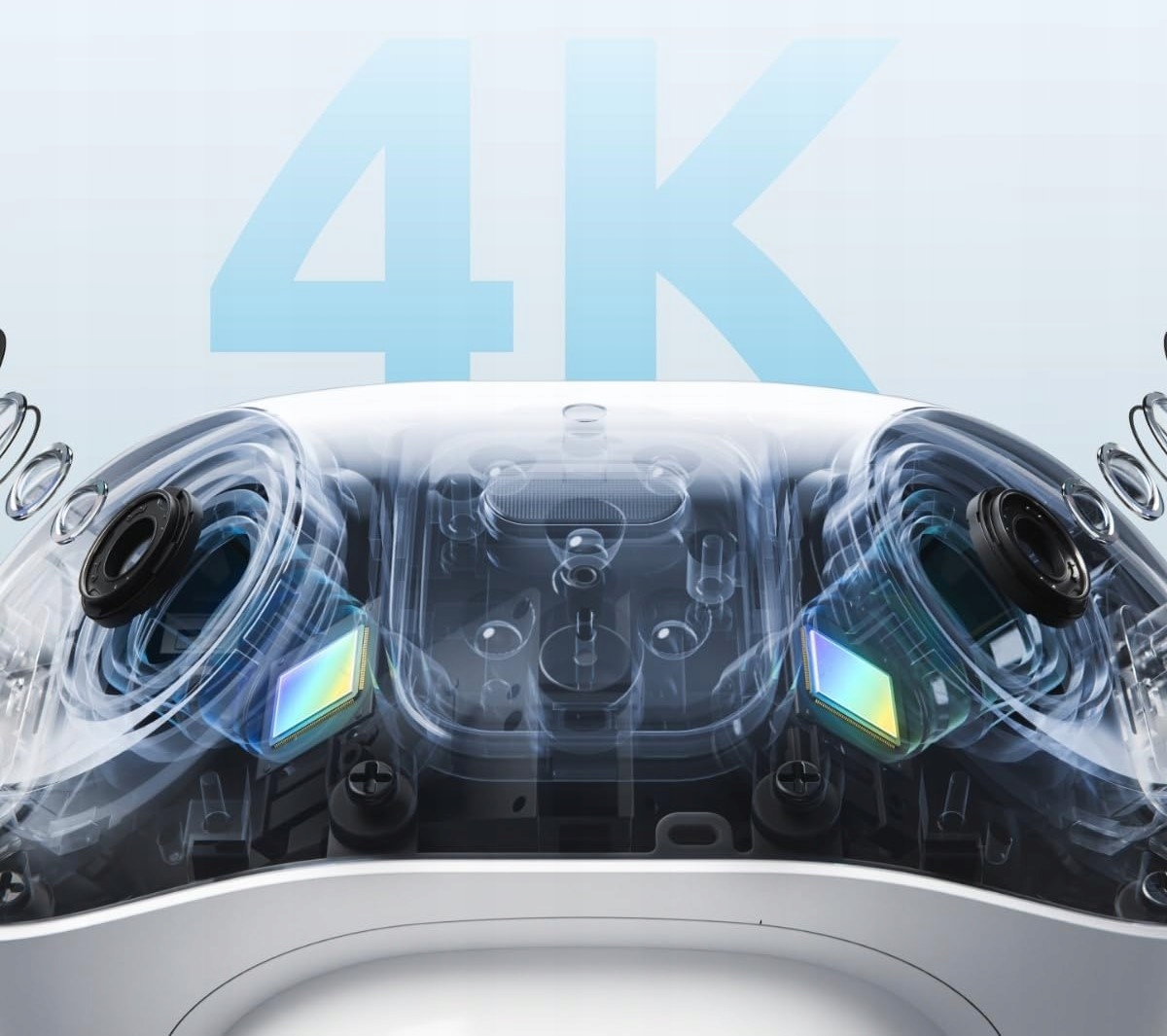 Dwa obiektywy łączą się w jedną płynną panoramę, umożliwiając pełną kontrolę nad monitorowaną przestrzenią bez martwych stref. Rozdzielczość 4K gwarantuje bardzo wysoką szczegółowość obrazu.