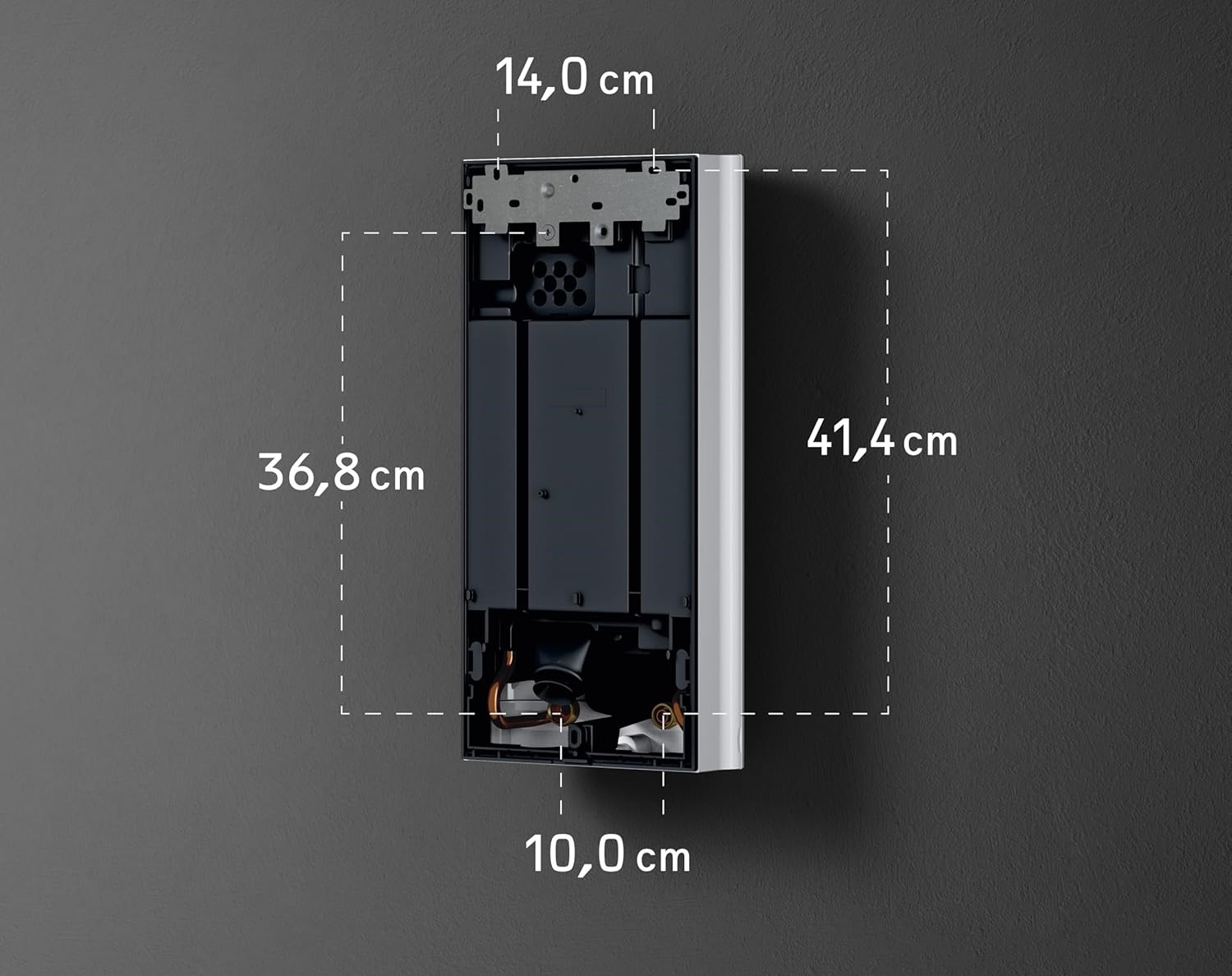 - Przyłącze prądu silnego z możliwością podłączenia od góry lub od dołu, co ułatwia dopasowanie do istniejącej instalacji.