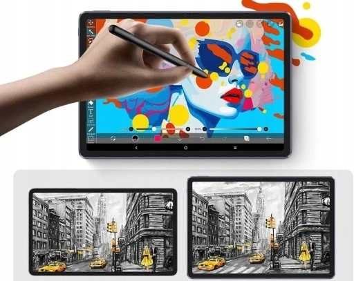 - Wbudowany system operacyjny umożliwia korzystanie z aplikacji artystycznych (np. ibis Paint X – subskrypcja 3 miesiące gratis), przeglądanie internetu, oglądanie filmów, czytanie e-booków i inne.
