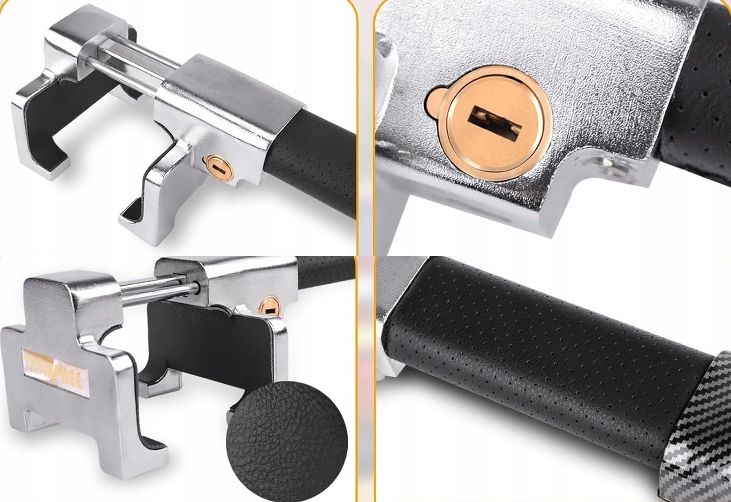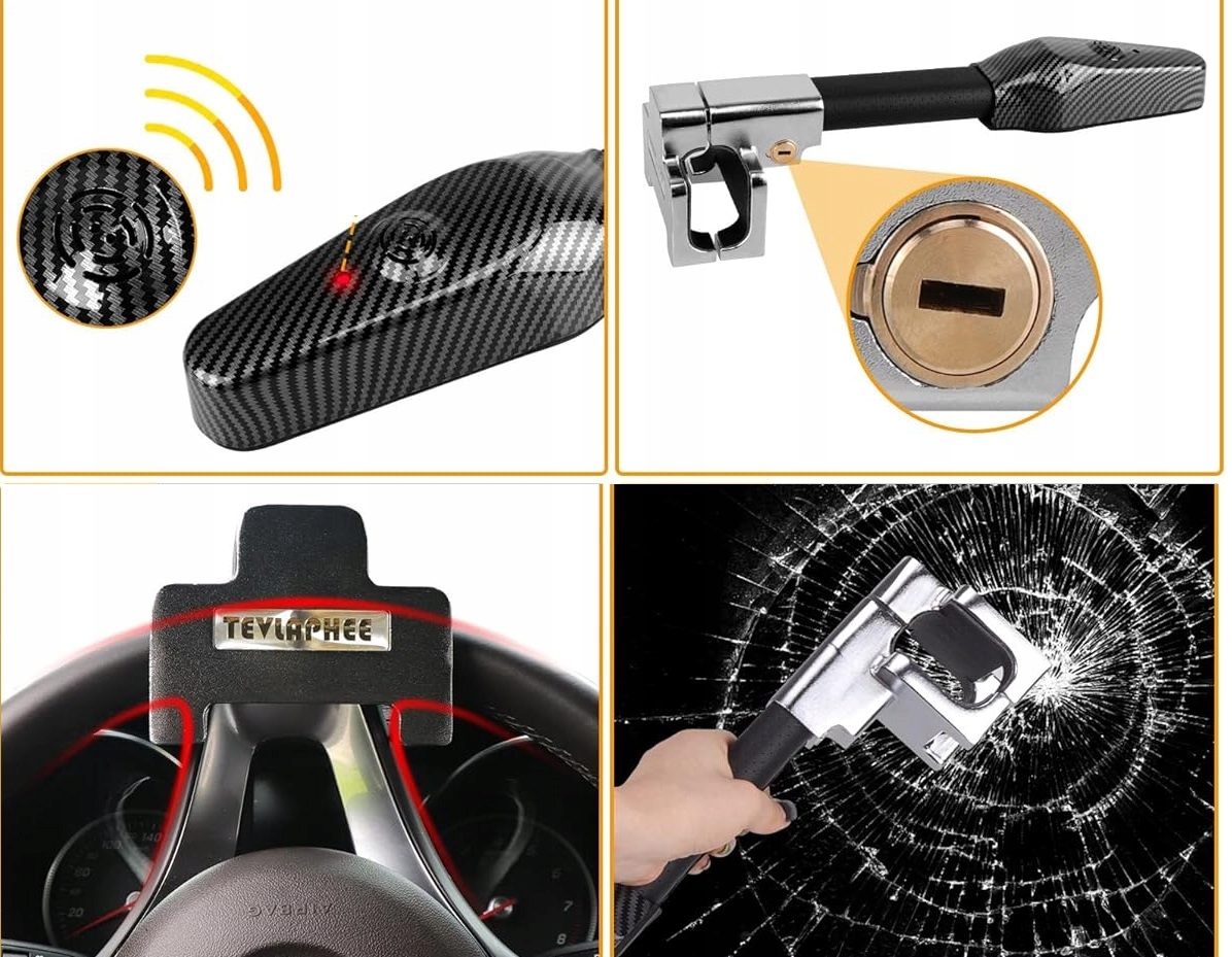 Zadbaj o bezpieczeństwo swojego pojazdu dzięki zaawansowanej blokadzie kierownicy TEVLAPHEE, która łączy solidną konstrukcję mechaniczną z inteligentnym systemem alarmowym. To skuteczna ochrona antykradzieżowa dla samochodów osobowych, SUV-ów i vanów.