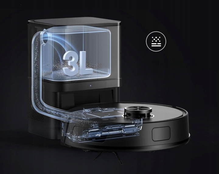 Robot współpracuje z automatyczną stacją opróżniania kurzu wyposażoną w worek o pojemności 3 litrów. Zintegrowany filtr HEPA oraz zamknięty system antyalergiczny zatrzymują do 99,99% pyłów i alergenów – idealne rozwiązanie dla alergików.