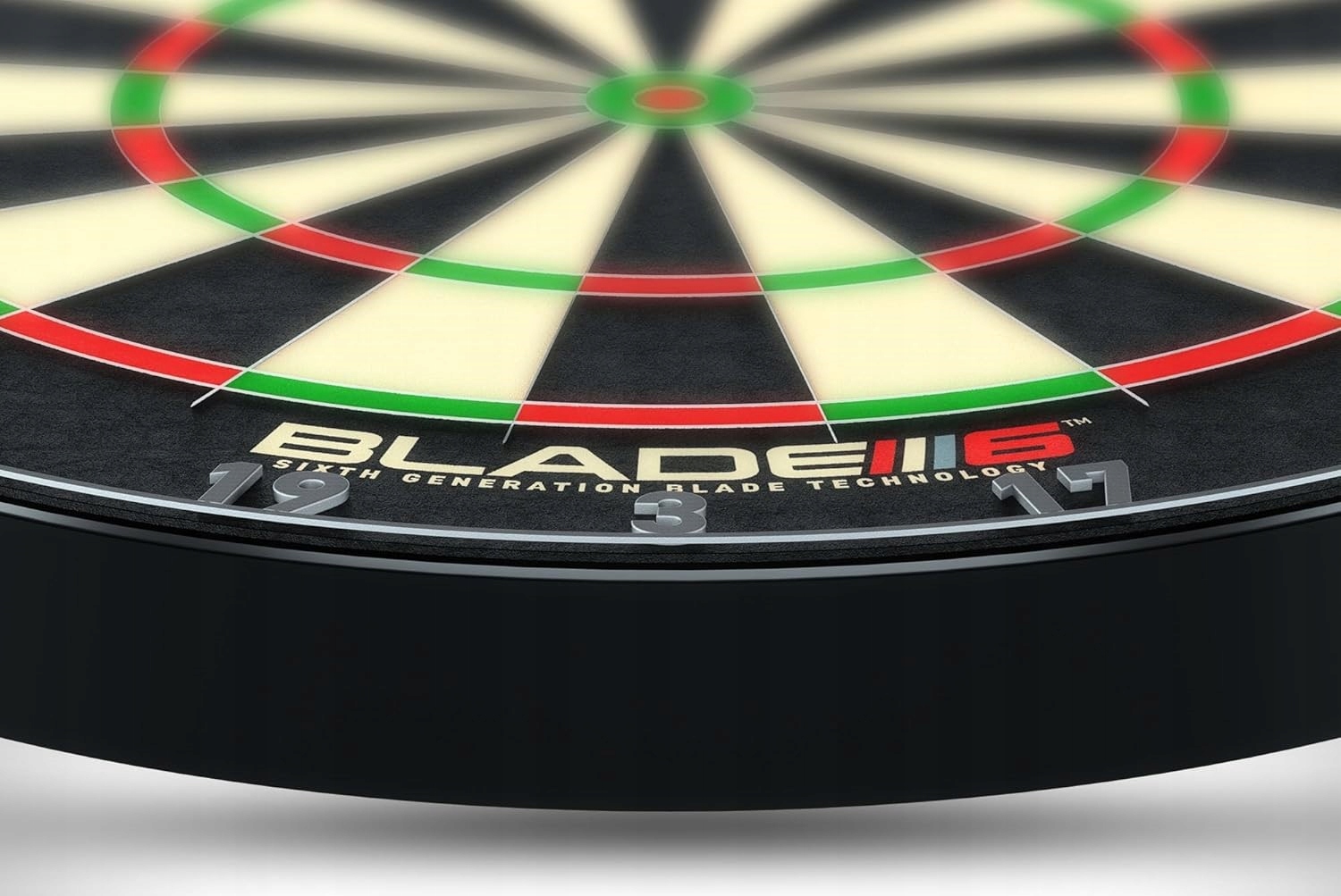 Pełnowymiarowy bullseye oraz zewnętrzny pierścień byka zostały wykonane z wykorzystaniem kontroli gęstości drutu, co sprzyja trwałości i spójności powierzchni gry. Konstrukcja sieci Blade 6 wspiera równomierne rozmieszczenie włókien w strefach punktowanych.
