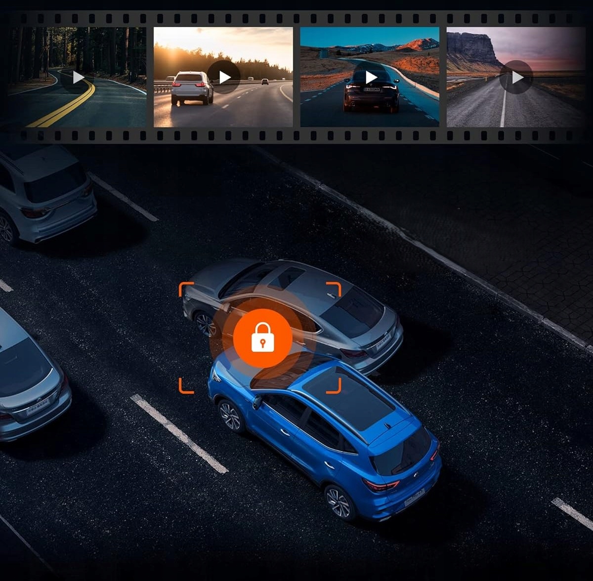 Kamera WOLFBOX G930 nagrywa obraz w rozdzielczości 4K z przodu oraz 1080p z tyłu. Dla przedniej kamery możesz wybrać tryb 2,5K lub 1080p, dostosowując ustawienia do własnych potrzeb. Intuicyjny ekran dotykowy umożliwia regulację kąta widzenia przesunięciem palca w górę lub w dół oraz szybkie przełączanie widoku (przód / tył / oba obrazy) gestem w lewo lub w prawo.