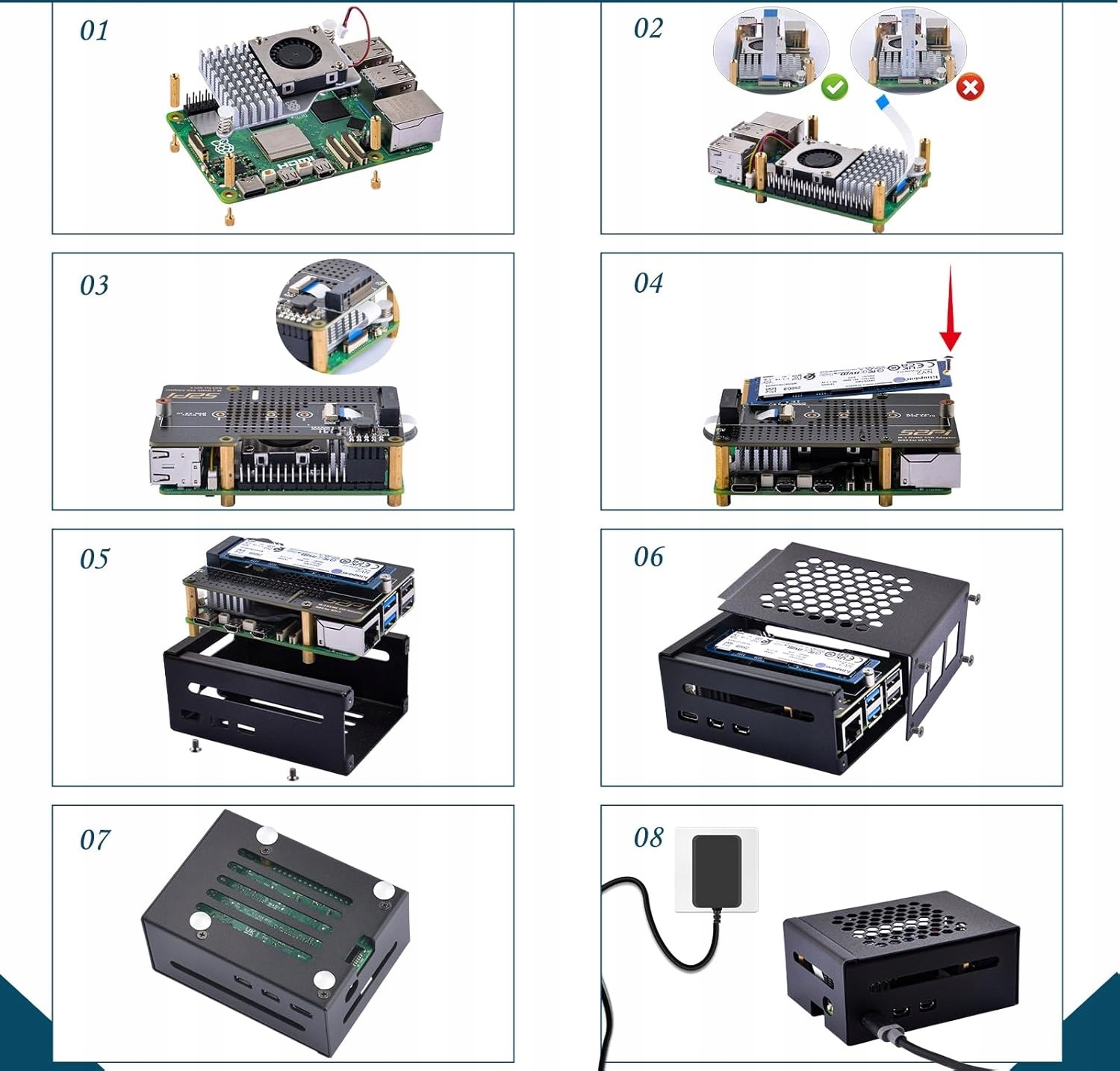 Zestaw startowy GeeekPi Raspberry Pi 5 8GB karta N04 M.2 NVMe SSD PCIe 27W